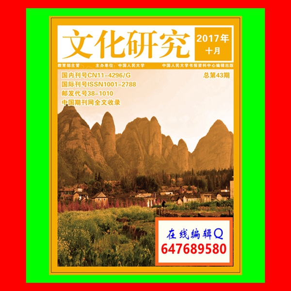 《文化研究》杂志是经国家新闻出版广电总局批准,教育部主管、中国人民大学主办,中国人民大学书报资料中心编辑出版的中国人文社会科学综合性期刊,国内统一刊号:CN 11-4296/G,国际标准刊号:ISSN 1001-2788,邮发代号:38-1010。本刊主要栏目设置:文化理论、国学研究、城市文化、教育文化、教师随笔、文化人类、创新教育、历史文化等。