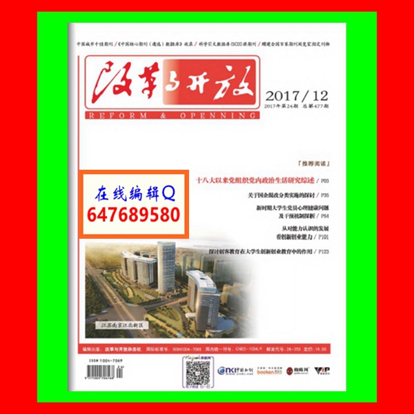 《改革与开放》杂志是经国家新闻出版广电总局批准、江苏省新闻出版局主管、江苏省南京出版社主办的全国公开发行的社科类优秀期刊。国际标准刊号:ISSN 1004-7069,国内统一刊号:CN 32-1034/F,邮发代号:28-253。主要栏目设置:分社会、政治、文化、经济四大板块,下设经济改革、企业发展、教育创新、科技资讯、热点话题、党政思想、理论实践、社会经济、政法研究、三农问题、人力资源、管理决策、百家论坛等栏目,是探讨各行业各学科改革开放指导方针和成果的重点指导性杂志。