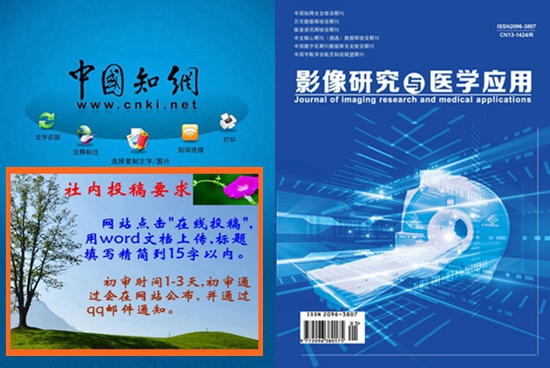 《影像研究与医学应用》杂志致力于医学理论与医疗实践的新发现、新突破,竭诚为各级医疗机构、医学研究单位、医药管理部门的医务人员、科研人员、管理人员服务,促进中国医学事业的不断发展。本刊容量大,发表快,具有学术权威性。本刊系中国核心期刊(遴选)数据库收录期刊、中国期刊全文数据库收录期刊、中国学术期刊(光盘版)收录期刊、中国学术期刊综合评价数据库来源期刊。在本刊发表的学术研究论文可在职称评定、晋升业绩考核以及岗位竞聘中起到科研认定作用。欢迎全国医学研究人员、影像医学医技术人员等踊跃投稿!