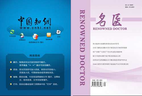 《名医》杂志以促进医学学术交流,加速医疗卫生科技成果推广,普及新理论、新技术、新方法为办刊宗旨,积极为临床教学科研服务,利用广泛的专家资源、技术资源和人力资源和科学化组织,为医学卫生行业和医药卫生工作提供优质学术交流平台。本刊为中国核心期刊(遴选)数据库、中国知识资源总库、中文科技期刊数据、中国知网(CNKI)数据库、万方数据库、维普期刊网、国家图书馆等大型数据库收录期刊。在本刊发表的论文可在职称评定、晋升考核以及岗位竞聘中起到重要科研认定作用。