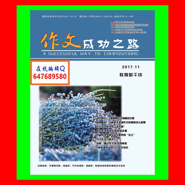 《作文成功之路》杂志征稿要求:文稿资料可靠、数据准确、具有创造性、科学性、实用性。应立意新颖、论据充分、数据可靠,文责自负(严禁抄袭),文字要精练,每版2300字左右。论文格式一般要包括:题目、作者及单位、邮编、正文,稿件尽量不用图表。论文下方要注明作者的详细通讯地址[例:××省××市(区、县)××路××号××学校××收,邮编:***]、联系电话(固定电话、移动电话)、联系电子信箱,以便我们及时快捷地与您联系。