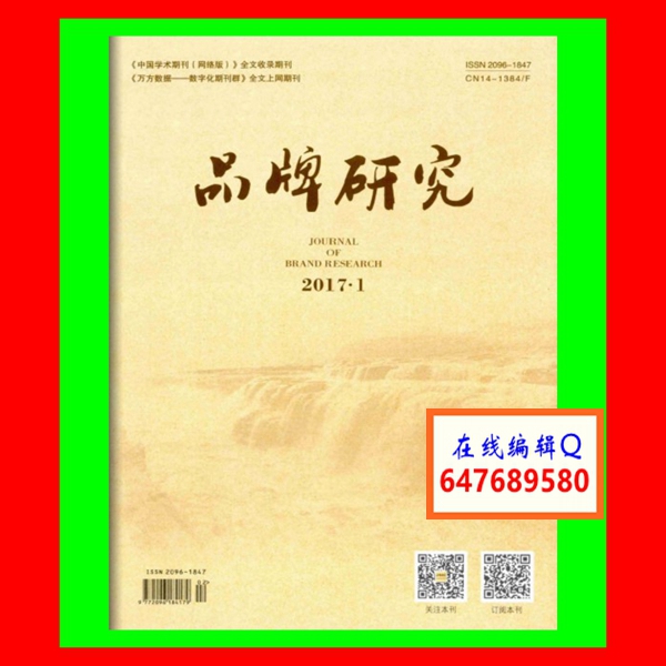《品牌》杂志是经国家新闻出版总署批准出版,由山西省政府发展研究中心主管、山西社会科学报刊社主办的国家重点学术期刊,省级期刊。国内统一刊号:CN 14-1289/F,国际统一刊号:ISSN 1671-1009。杂志类型:综合经济科学杂志-F。主要栏目设置:高端、特别策划、独家观察、品牌论谈、品牌营销、品牌诊断、城市、人物、文化等。影响因子:(2017版)复合影响因子:0.151;(2017版)综合影响因子:0.047。