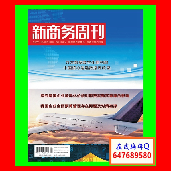 《新商务周刊》是海峡出版发行集团主管,海峡书局出版社有限公司主办,新商务周刊杂志社出版,新商务周刊传媒发展有限公司出品的的全新商业新闻深度报道双周刊,于201286日正式创刊面市,全国发行。国内刊号:CN 35-1316/F,国际刊号:ISSN 2095-4395,邮发代号:34-84。主要栏目设置:商业文化、宏观经济、金融视线、信息产业、人力资源、财会研究、管理纵横、理论探索等。本刊由万方期刊数据库全文收录。