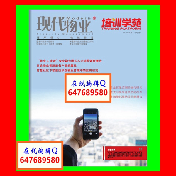 《现代物业》(中旬刊)杂志稿件要求:(1)内容:立意新颖,观点明确,内容充实,论证严密,语言精炼,资料可靠,能及时反映所研究领域的最新成果。本刊尤为欢迎有新观点、新方法、新视角的稿件和专家稿件。格式必备与顺序:标题、作者、作者单位、摘要、关键词、正文、注释或参考文献。篇幅以2200-8800字为宜。2200字左右为1个版面。(2)请在来稿末尾附上作者详细通讯地址。包括:收件人所在地的省、市、区、街道名称、邮政编码、联系电话、电子信箱、代收人的姓名以及本人要求等,务必准确。论文有图表的,请保证图片和表格的清晰。来稿一律通过电子邮件(WORD文档附件)或QQ发送,严禁抄袭,文责自负。出刊后赠送当期杂志1册。